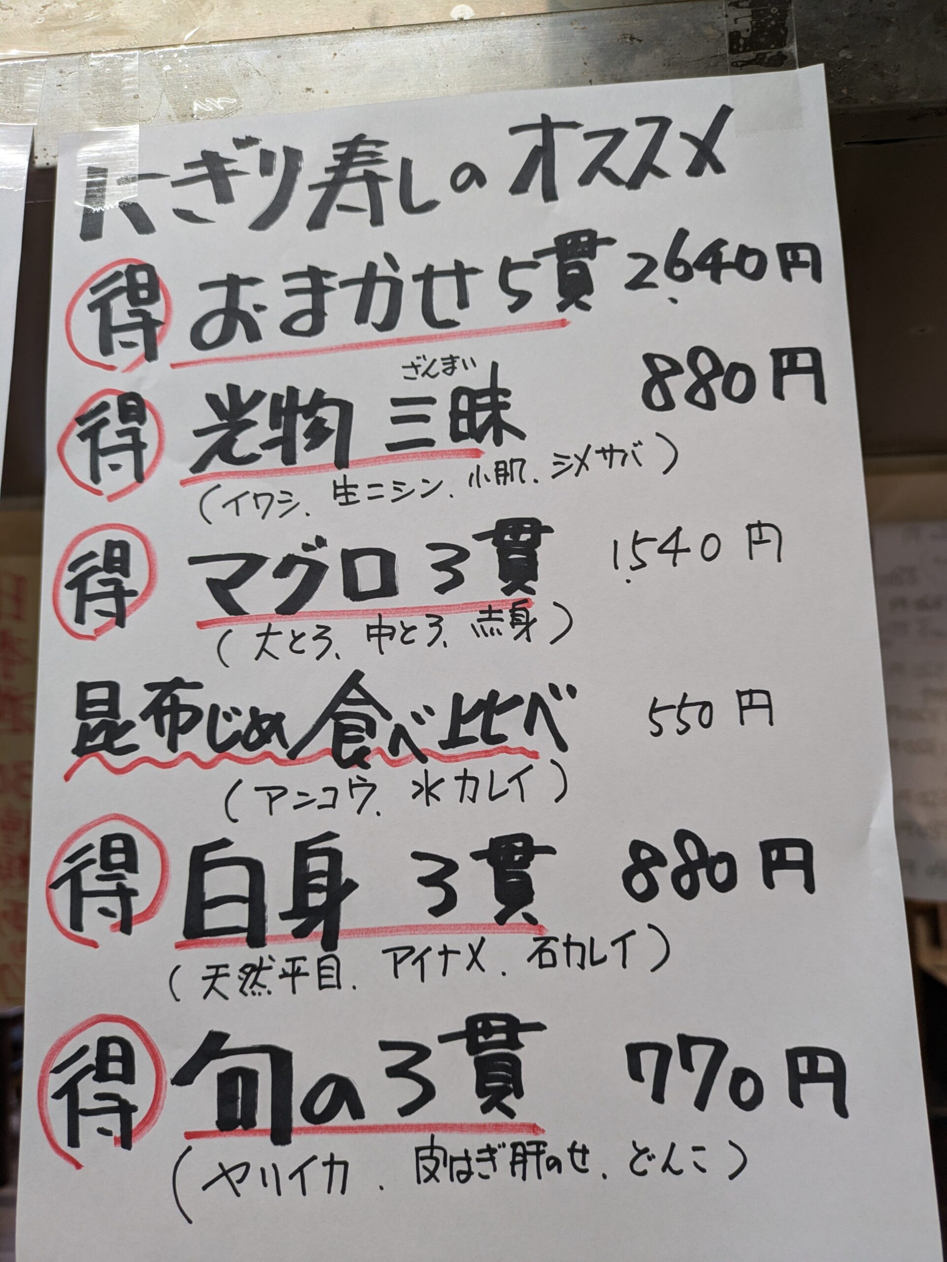 本日の握り寿司のオススメ